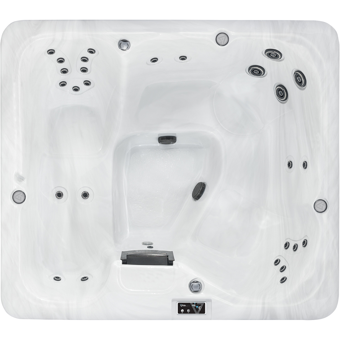 Vita Spa hot tubs are finished in an attractive interior made from continuous cast acrylic. This is superior to ethylene “soft plastic” surfaces. The hard, non-porous surface resists stains, fading, scratches and chemical abuse. With the look of granite, pearl or metalescent, the extremely rugged and durable finish offers beauty and peace of mind.