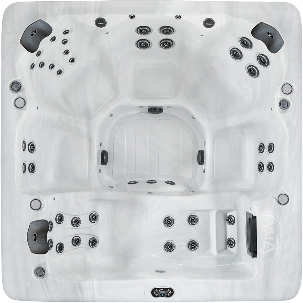 Vita Spa hot tubs are finished in an attractive interior made from continuous cast acrylic. This is superior to ethylene “soft plastic” surfaces. The hard, non-porous surface resists stains, fading, scratches and chemical abuse. With the look of granite, pearl or metalescent, the extremely rugged and durable finish offers beauty and peace of mind.